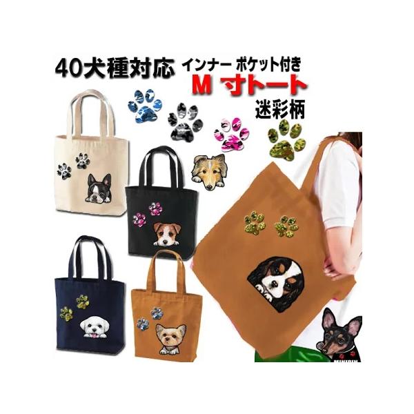 メール便 トートバッグ オリジナル ファスナー付 ポケット付 お散歩バッグ かわいい 誕生日 お散歩かばん お出かけ カバン 手提げかばん 贈り物 オーダーメイド 父の日ギフト プレゼント 父の日 送料無料 40犬種 M寸 お散歩バッグ 迷彩柄 ビションフリーゼ 狆 イタグレ